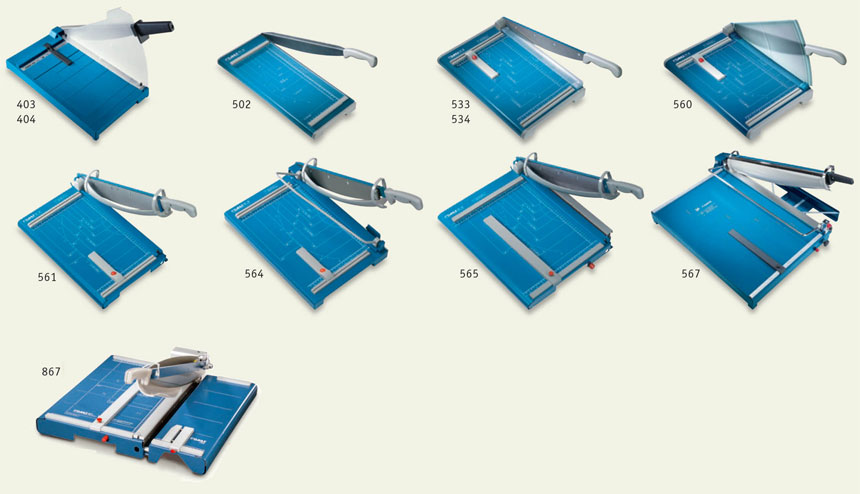 Конструкция сабельных резаков бумаги подходит для обработки средних тиражей, позволяя разрезать одновременно большее количество листов бумаги и гораздо больше видов материалов по сравнению с роликовыми резаками.