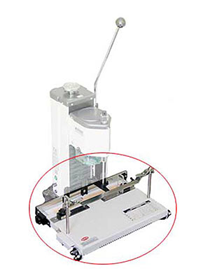 Filepecker III 100 NT производства фирмы SPC (Корея) - мощные одноголовочные машины, которые позволяют делать отверстия в стопах бумаги толщиной до 100 мм, что является непревзойденным показателем для оборудования данного класса. Оснащены <скользящим столом>. Выбор положения отверстия производится с помощью универсальной планки с перемещаемыми упорами или планки с разметкой под 5 стандартных форматов, которые можно переключать на <скользящем столе>. Варианты положения отверстий выбираемых на планке с разметкой приведены в таблице на столе. Точно выставить положение бумаги помогают боковые ограничители с линейкой, а при движении стола ее фиксирует специальный прижим. Вначале сверления бумага фиксируется дополнительным прижимом, обеспечивающим отсутствие смещения и точность сверления. Задний упор позволяет регулировать пробивку отверстий от 0 до 60 мм от края листа. В машинах применяется новая <безударная> система. Пустотелые сверла устанавливаются непосредственно на вал двигателя, что позволяет избежать даже незначительных вибраций и делает работу более точной, мощной и бесшумной. Отходы собираются в специальный приемник. Машины имеют настройку на сверла любой длины.